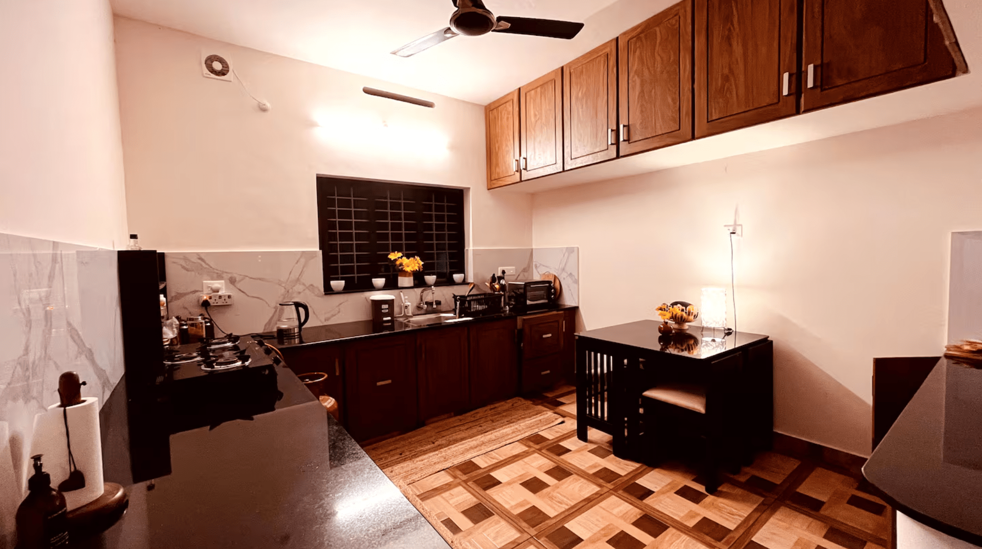 Our villas are tucked into quiet local neighbourhoods, offering a lived-in, homely atmosphere rather than a polished resort feeling. Each villa stay in Varkala gives you space to work, rest and connect with the area at your own pace — with strong Wi-Fi, calm surroundings and essential amenities that support your flow.